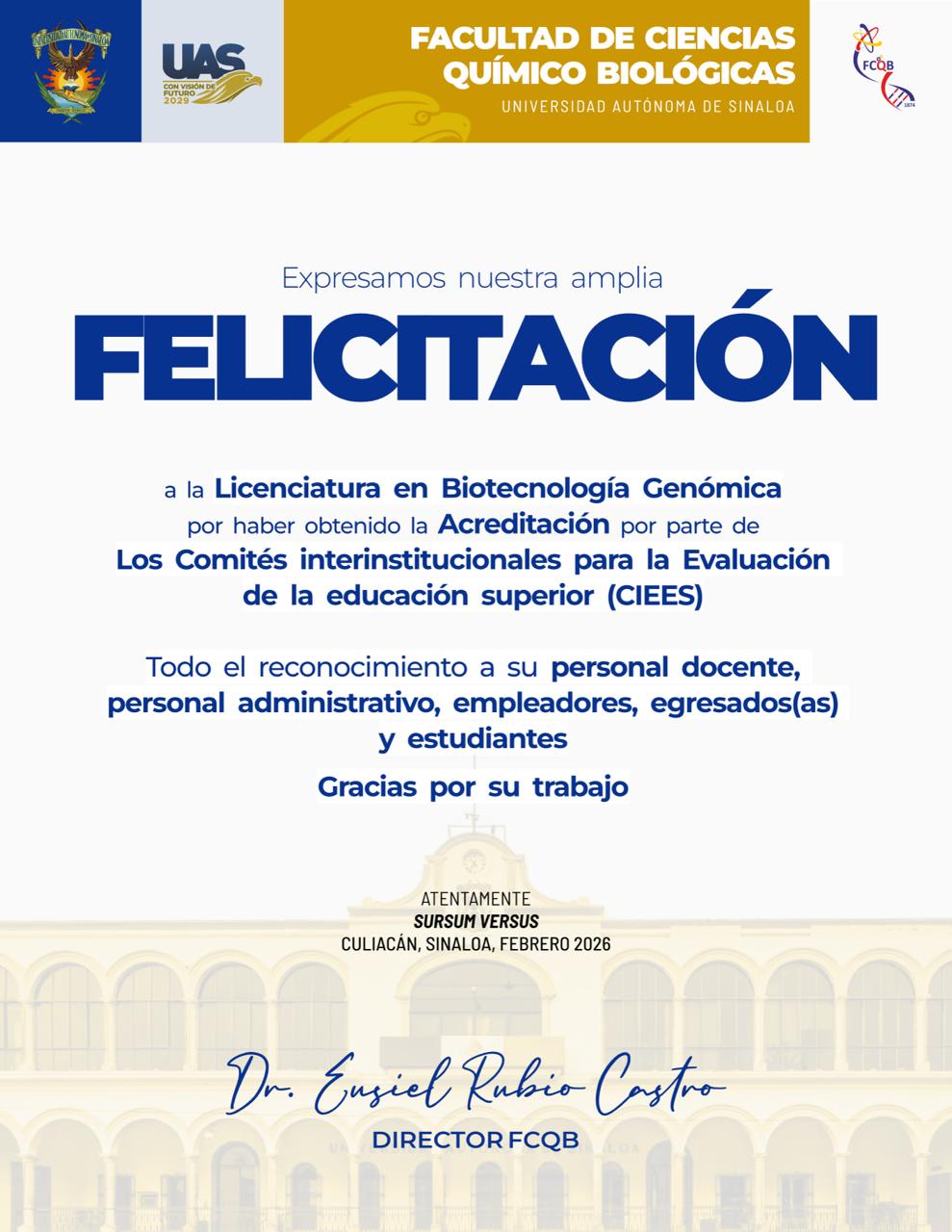 Felicitamos a la Licenciatura en Biotecnología Genómica